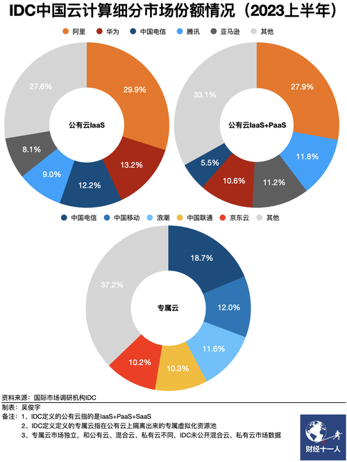 2023年中国云市场的出现了明显的分野:阿里云、腾讯云在聚焦公有云,华为云和运营商云在发力混合云、私有云、专属云等本地部署的云。