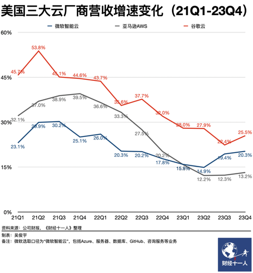 不过,从财报数据看,美国云厂商吃到了第一波增长红利,中国云厂商暂时没吃到明显的增长红利。2023年下半年开始,美国云市场因大模型开始复苏。