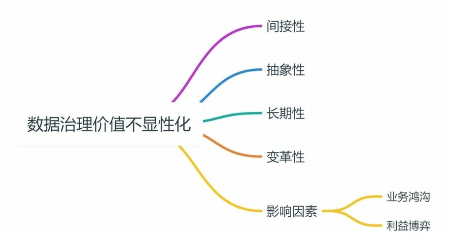 我们要承认,在当前大多数企业内,数据治理还没有被广泛接受为一项核心业务活动。大家对数据治理的这种间接性特点是缺乏认识的,会用传统价值评估的方式来评价数据治理,很容易得出数据治理“华而不实"的结论。