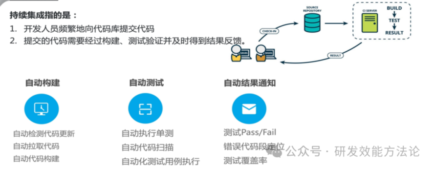 反馈机制。如构建/测试的失败,可以快速地反馈到相关负责人,以尽快解决达到一个更稳定的版本。