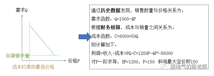 商品价格/促销与销量的关系,容易用数据量化,因此催生出一个经典的算法模型:价格弹性模型。首先采集不同价格下商品销量;第二步,拟合函数,总结出量价模型;第三步就可以拿模型推测涨价效果,或者求出利润最大化的价格了(如下图):