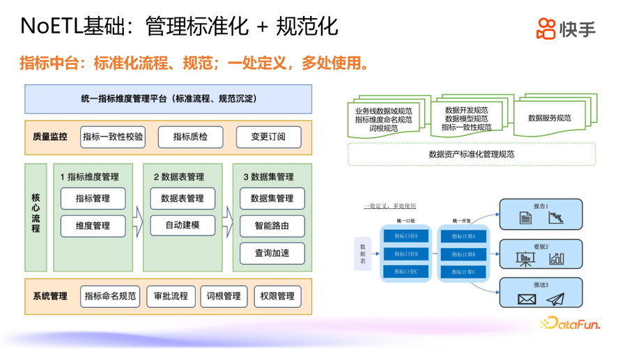 首先,如前所述,分析链路中的数据和服务的规范化与标准化是实施 NoETL 的基础。(1)管理标准化、规范化