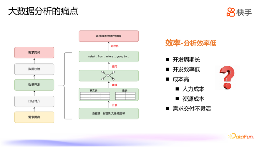 开发效率低:开发过程涉及大量的 ETL 处理,开发效率较低。
