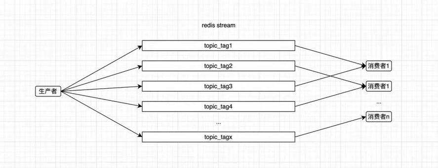 在MQ中,同一个topic下可以有若干个tag,每次发送需要携带topic和tag信息,消费者可以指定tag进行消费,这样既实现集群消费,又保证了同类数据被同一下游处理,而在Redis Stream中没有tag的概念,只有topic的概念,准确的说,只有key的概念,一个topic即为一个key,消息的队列即为key对应的value,为了保证原有功能不变,我们将topic进行拆分,生产者和消费者指定的topic实际上仅为topic的前缀,真正在redis内存中存储的topic(redis的key)实际上是topic和tag的完整信息,形式为“topic_tag”,上游发送消息指定topic和tag,SDK计算出完整的topic并将消息写入,下游消费指定topic和tag,SDK计算出完整的topic进行拉取,这样便实现了“tag”的功能。