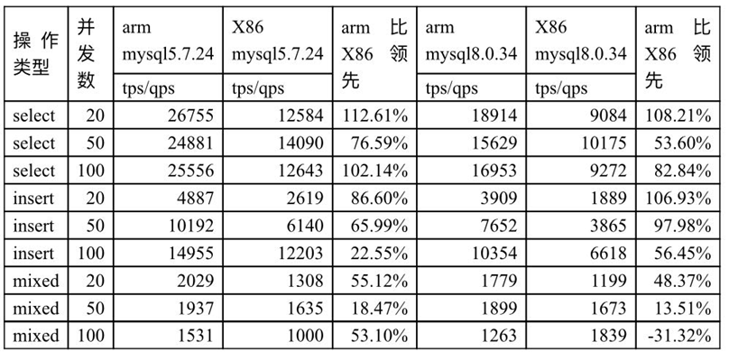 (备注:mixed 100并发场景,厂商解释因为内存太少压测不能体现鲲鹏CPU性能优势,需扩容内存或使用BoostKit调优工具对锁进行优化。)