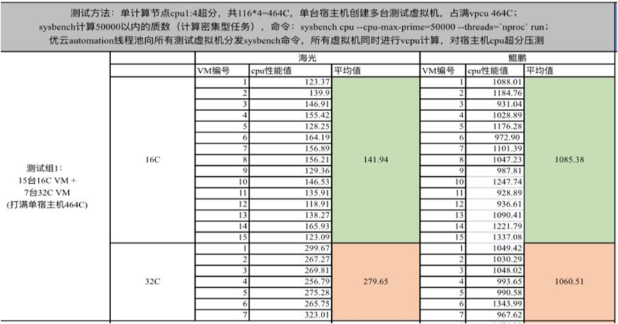 海光/鲲鹏测试虚拟机规格均为8C16G,虚拟机磁盘均为SSD/文件系统XFS。