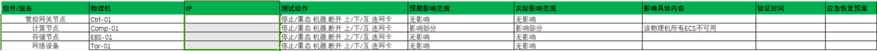 对于管控面所有重要虚拟机、服务均进行停止/重启测试动作,数据面按设备类型(计算节点、块存储节点、对象存储节点等)抽样进行停止/重启测试动作。