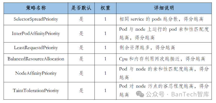第二步:优选阶段,在第一步筛选出的符合要求的节点中,通过Kubernetes内置的优选策略来对每个节点进行打分。
