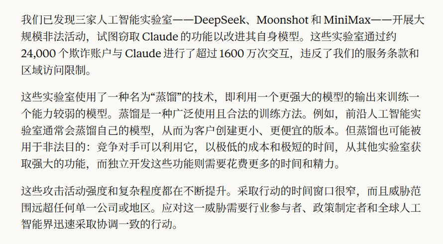 Anthropic发难,指控中国AI公司“模型蒸馏”侵权。