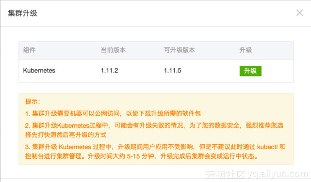 目前Kubernetes开发团队已经发布V1.10.11、V1.11.5修复补丁,阿里云容器服务也已在第一时间完成漏洞全面修复,用户登录阿里云控制台即可一键升级。