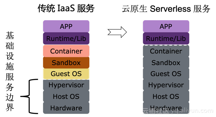 无服务器 (Serverless) 技术的核心是将用户从繁冗的基础设施运维问题中拯救出来,让用户能够将精力专注于自身业务和服务上。用户使用传统的云计算基础设施过程中需要用户自己掌握大量的专业运维知识,对底层基础设施的规模、配置、运行时环境进行管理。ECI 通过结合容器技术和无服务器技术,将云厂商的运维边界从基础设施的整机层面提升到了容器运行时层面。随着服务边界的提升,此前需要用户自己管理的组件如操作系统,软件运行时,监控运维工具等均由 ECI 提供。在上述组件的研发和运维上,阿里云具备丰富的经验,如定制操作系统及内核,针对各类场景的性能优化,完善的运维数据采集手段等。在使用 ECI 服务后,用户不再需要关心操作系统的升级,安全漏洞的修复这些琐碎的工作。