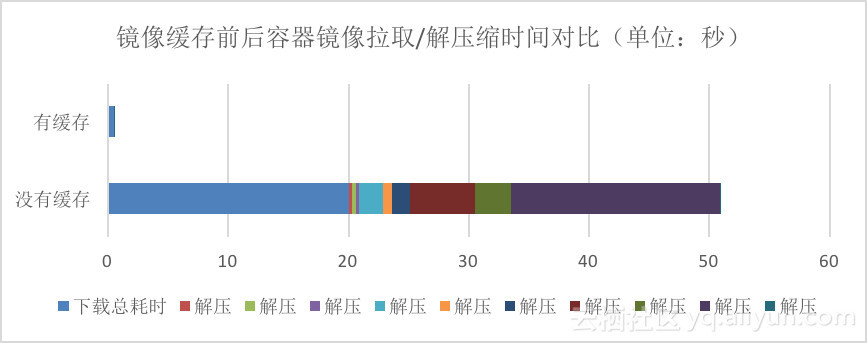 针对云原生时代用户对基础设施的诉求,我们着重改进了用户的使用体验。ECI 的一大特点是弹性,当用户业务负载增加时需要迅速扩容部署用户的服务来应对突发业务流量。因此服务的扩容部署时间直接影响用户体验。为此 ECI 服务在管控、虚拟化、镜像拉取等多个层面对交付时间进行了优化。借助与 ECS 服务共生的关系,通过优化 ECI 的管控系统能够更快的获取各类底层基础资源的情况,着重对创建链路进行优化,加快管控系统中 ECI 相关创建事件的处理速度。在容器运行环境的创建中也采用了特殊的虚拟化技术,快速批量创建实例。该技术允许我们跳过原来虚拟机系统启动的大部分流程,通过上述技术可以将实例的创建时间缩短6秒。此外,我们也对容器镜像的拉取过程进行了一定的优化。我们知道容器在启动之前首先需要将需要的镜像拉取到本地。这一过程包括镜像的拉取和解压缩两个过程。镜像拉取过程是可以并行进行的,而解压缩过程则必须要串行进行。因为容器镜像是分层的,必须要从最基础的镜像开始构建。通过镜像缓存,我们可以避免掉大部分镜像的拉取和解压缩工作。