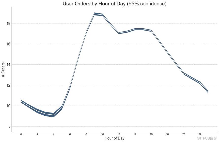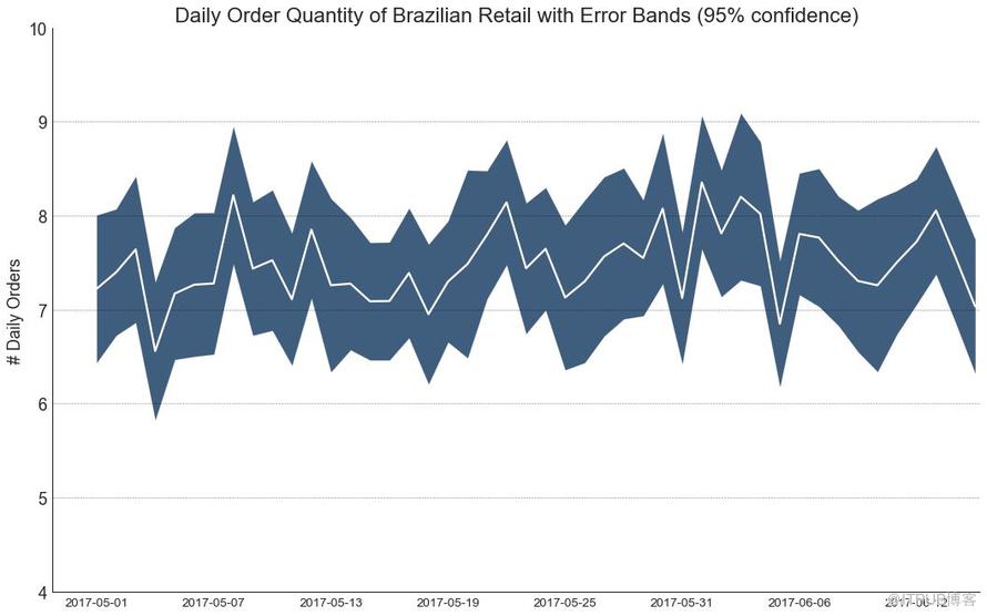 在该方法中,订单数量的平均值由白线表示。 并且计算95%置信区间并围绕均值绘制。