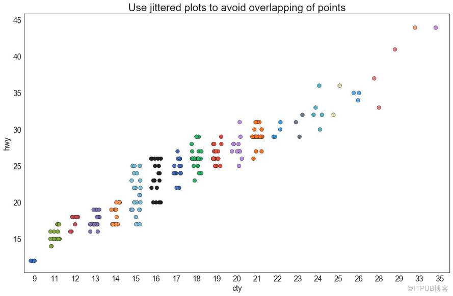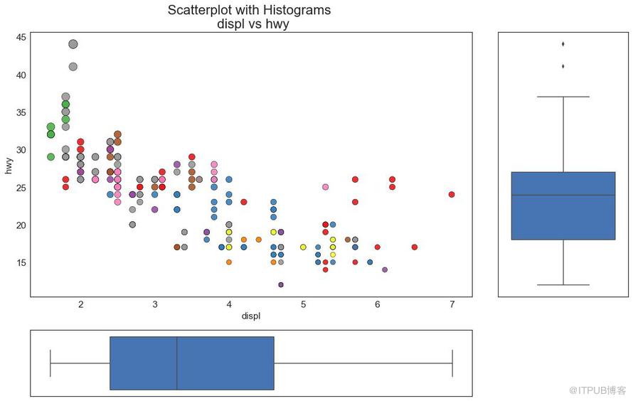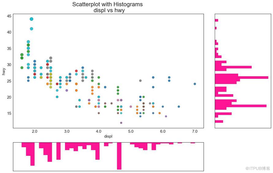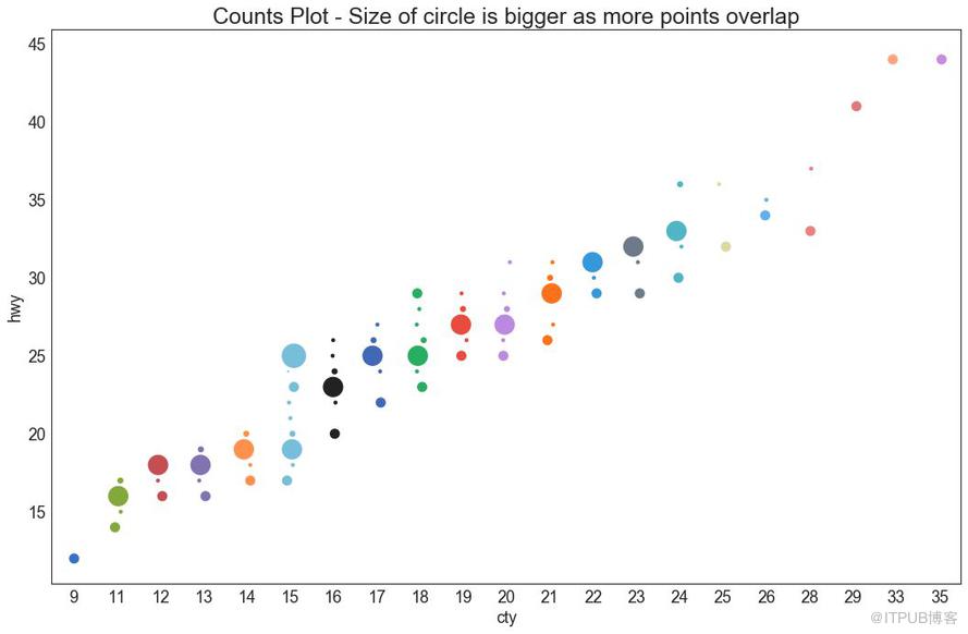 散点图是用于研究两个变量之间关系的经典的和基本的图表。 如果数据中有多个组,则可能需要以不同颜色可视化每个组。 在 matplotlib 中,您可以使用 plt.scatterplot()