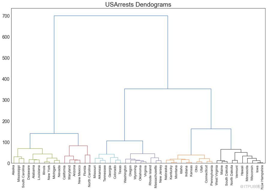 plt.title("USArrests Dendograms", fontsize=22)