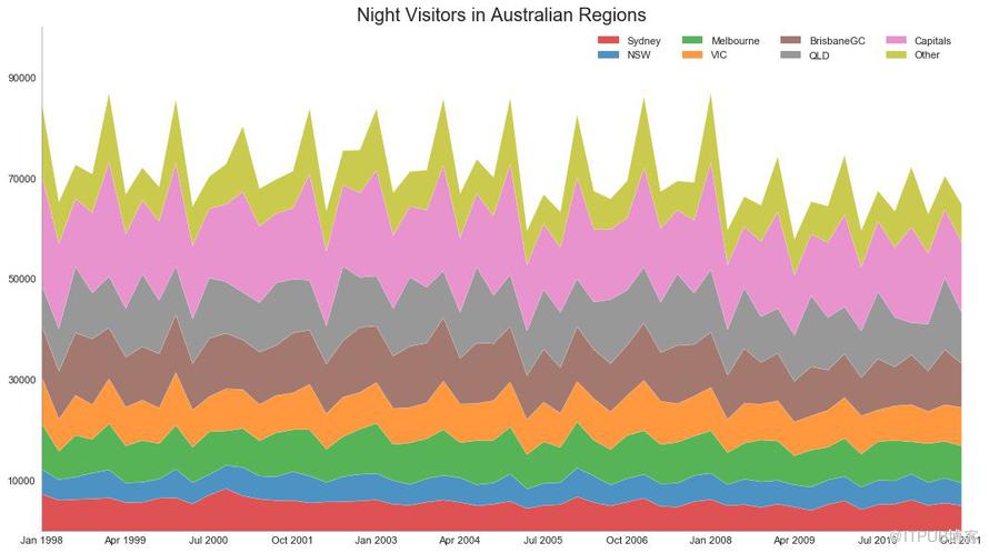 堆积面积图可以直观地显示多个时间序列的贡献程度,因此很容易相互比较。