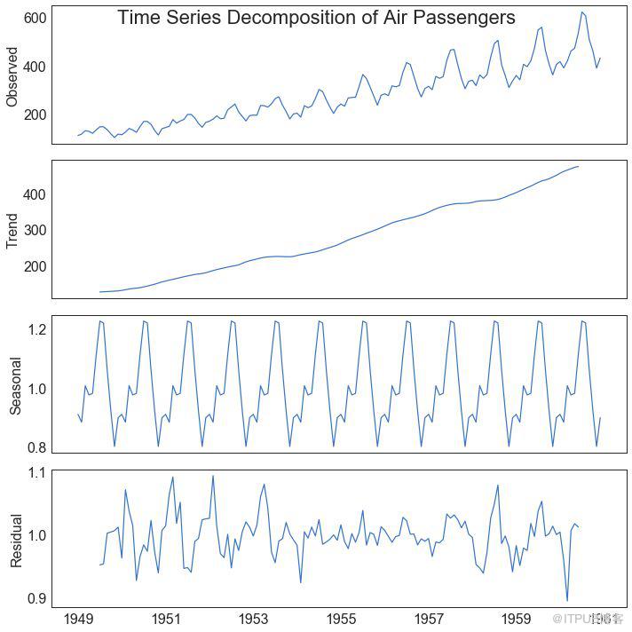 result.plot().suptitle('Time Series Decomposition of Air Passengers')