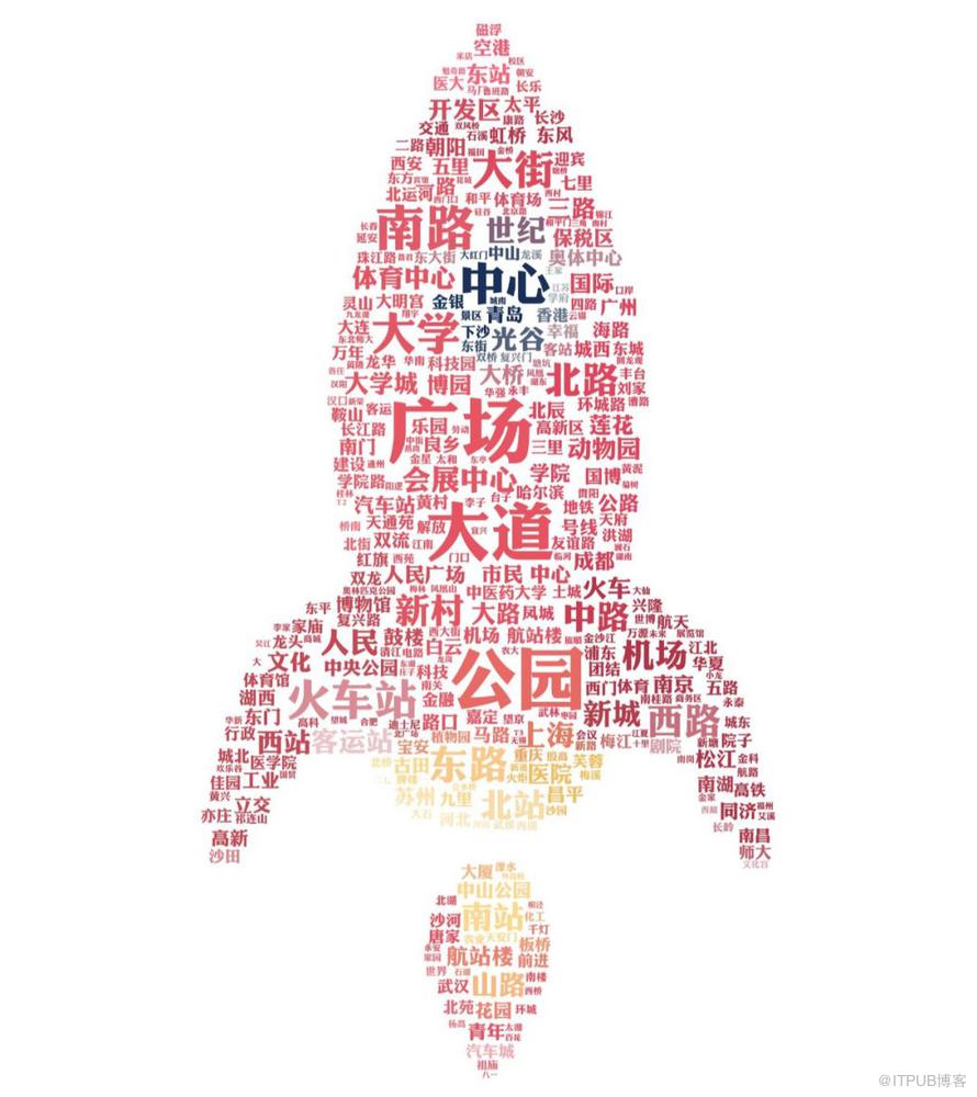 广场、大道、公园占了前三,和新周刊的图片一样,说明分析有效。