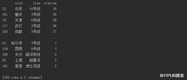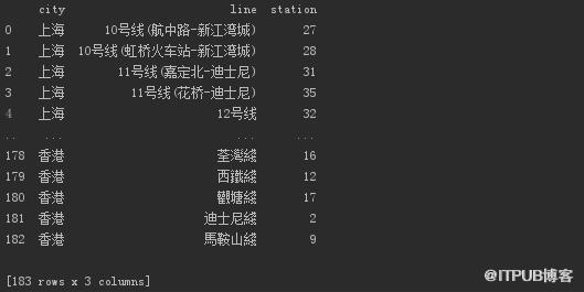 df = pd.read_csv('subway.csv', header=None, names=['city', 'line', 'station'], encoding='gbk')