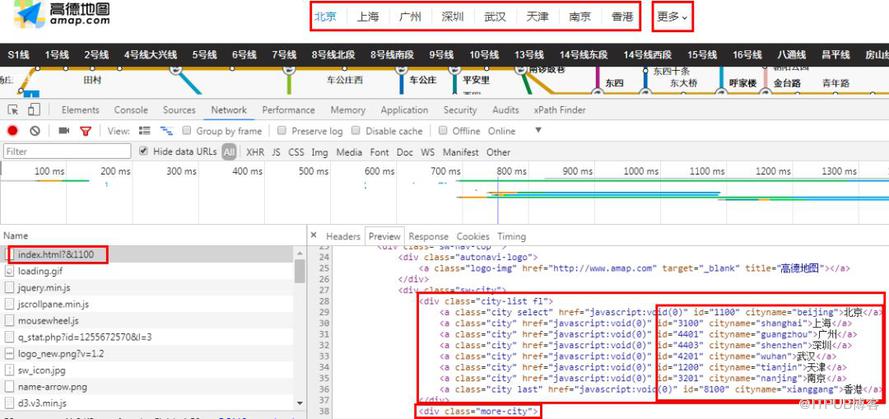 找到请求信息,获取各个城市的地铁线路以及线路中站点详情。