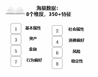 个推以消息推送服务起家,为数十万APP提供高效稳定的推送服务,并沉淀了丰富的数据资源,覆盖超过40亿终端设备,数据全面、广泛且有深度。利用设备基础信息、线上APP偏好数据、线下场景数据以及外部补充数据,个推构建了8个维度、350+特征,同时对特征进行动态更新。 基本属性、资产、金融、行为偏好、社会属性、消费偏好、风险和稳定性构成了个推金融数据的八大维度;个推利用数据的八大维度,逾350种特征进行模型构建,并将其应用于金融风控各环节。