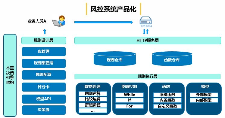 前面几个流程主要讲的是个推利用多维度特征自主构建风控模型,但在很多业务场景客户希望快速构建特征、快速返回风控结果。为此,我们研发上线个真决策引擎,在规则设计层为客户提供风控规则,让业务人员在规则执行层通过规则性加工进行灵活操作,目前已提供给部分客户试用。