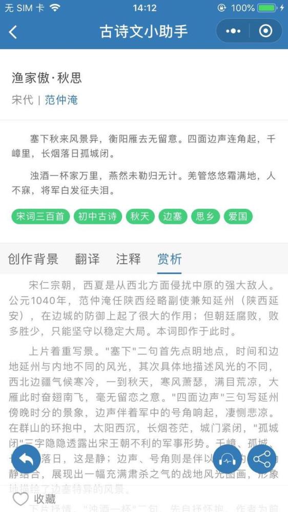 学古诗最怕什么?不会翻译! 这款小程序提供了各类古诗关键词查询,还能帮你翻译,每日的一诗赏析,对你学习古诗词有很大帮助!