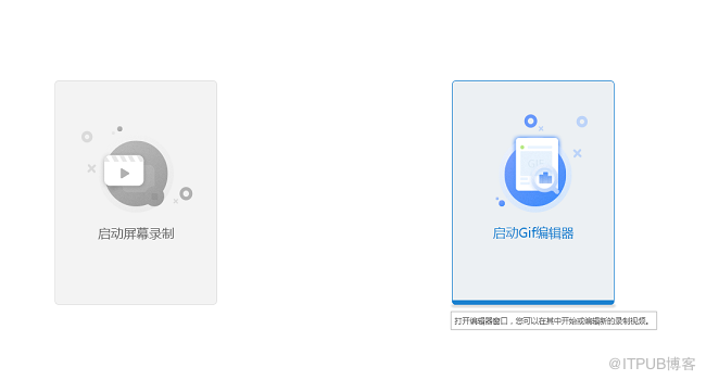 2 、安装之后双击运行,会有两个选择按钮,对于想将视频转为GIF的朋友来说,事先应该都有准备好的素材,如果有已经把保存的视频,可以直接点击“启动GIF编辑器”;