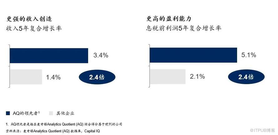 一方面,数字化转型是为了改善运营业绩。在传统精益改善和管理优化的基础上,业务和流程的数字化变革能够为企业进一步创造降本增效的潜力:通过全价值链的数字化转型,包括采购和销售数字化、办公流程自动化、生产和供应链互联透明等举措,大幅提高人员和资产效率,在激烈的行业竞争中保持领先。据麦肯锡全球研究院预测,到2025年,数字化突破性技术的应用每年将带来高达1.2万亿~3.7万亿美元的经济影响价值。 另一方面,数字化转型有助于提升企业的收入和盈利能力,带来显著的财务价值。数字化麦肯锡的Analytics Quotient数商数据库在调研了全球多家企业后发现,数字化水平成熟度高的企业,其业务增长动力也越强。数字化综合能力强的企业,其收入增长率和利润增长率均为其余样本平均值的2.4倍。数字化转型可以为企业带来真金白银的价值,为企业发展提供持续动力。