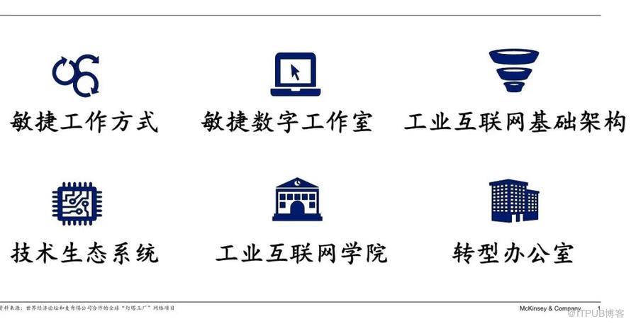 业务转型是指企业通过全价值链的数字化变革实现运营指标的提升,包括在销售和研发环节利用数字化手段增加收入,在采购、制造和支持部门利用数字化技术降低成本,在供应链、资本管理环节利用数字化方式优化现金流。成功的业务转型需要认清方向,明确愿景,制定分阶段的清晰转型路线图;同时关注全价值链环节,以“净利润价值”为驱动,而不是简单地从技术应用顺推转型。 技术转型是指搭建企业数字化转型所需的工业物联网架构和技术生态系统。工业物联网架构是支撑数字化业务用例试点和推广的“骨骼”,数据架构是确保“数据-信息-洞见-行动”能够付诸实现的“血液”,而整体架构的构建需要始终以数字化转型的终极目标为导向。技术生态系统则是一个囊括外部丰富数字化智慧和能力的朋友圈,部署数字化用例、数字化技术的迭代创新以及新技术的引进,都离不开技术生态系统其他合作伙伴的支持。成功的技术转型需要健全物联网架构,创造并引领主题明确的技术合作伙伴生态圈,促进企业借力合作,取长补短,共同发展。 组织转型是指在组织架构、运行机制、人才培养和组织文化上的深刻变革。成功的组织转型是一场自上而下推动的变革,需要企业高层明确目标,构建绩效基础架构,成为指导转型行动方向的“大脑”;形成转型举措和财务指标的映射,成为反映转型业务影响的“眼睛”;树立全组织一致的变革管理理念和行为,成为引领组织上下变革的“心脏”。另一方面,企业需要关注团队的构建,弥补员工的能力差距,建设数字化知识学习的文化并使之可持续发展;还需要推进数字化能力和人才梯队的建设,组成推动转型大规模推广的“肌肉”;构建敏捷型组织和团队,为又快又好实施和优化转型举措提供“瑜伽士”。