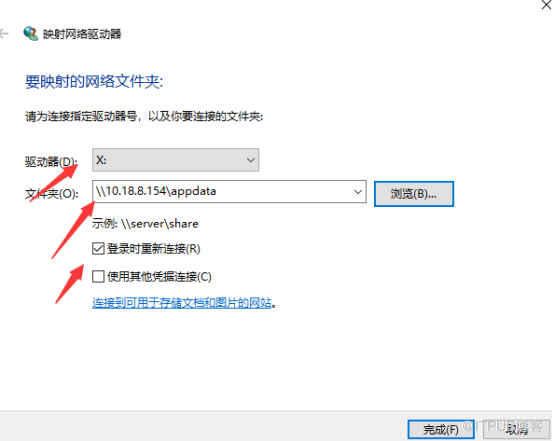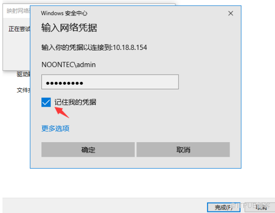 请勾选记住我的凭证,否则,电脑重启后需重新映射驱动器;