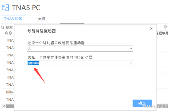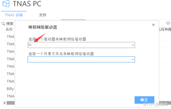 选择要映射的TNAS 共享文件夹,点击确定;