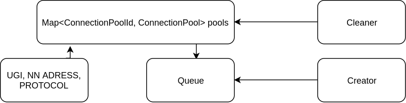 ConnectionManager 维护了一组连接池,每个 RPC 的UserGroupInformation,NameNode Address 和 Protocol 共同构成了连接池的 Key.连接池在构造时会创建一定数量的 RPC Client,随后对于每一个过来的 RPC,在连接池里找一个空闲的 RPC Client 用以发送RPC.当空闲的 RPC Client 不够时,由后台的 Creator 线程异步的构造新的连接,同时有后台的 Cleaner 线程负责清理连接池。