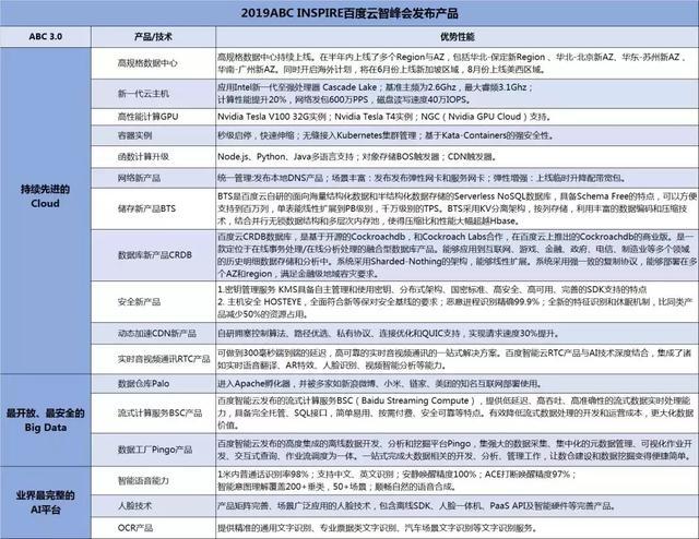 (百度智能云推出的ABC新产品/技术列表)