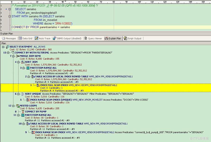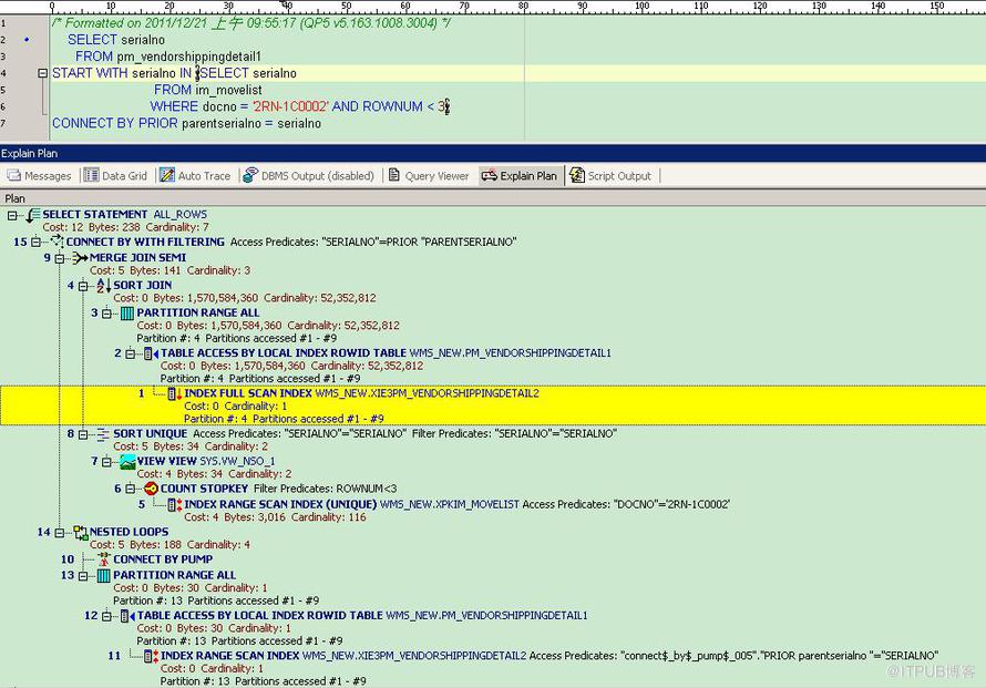這段的執行計劃竟然有個INDEX FULL SCAN。。。所有的Loading應該都在這裡。