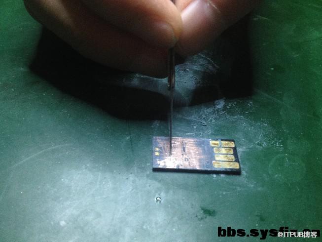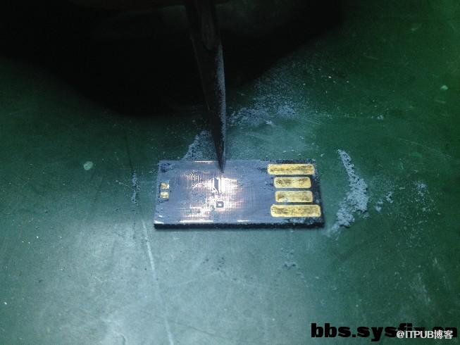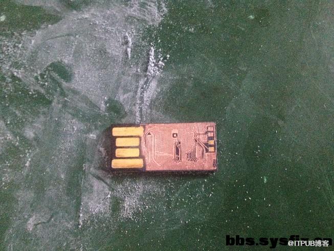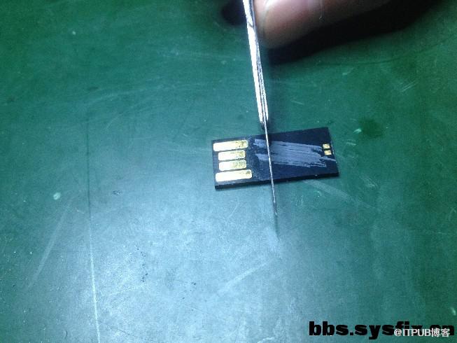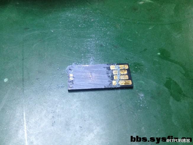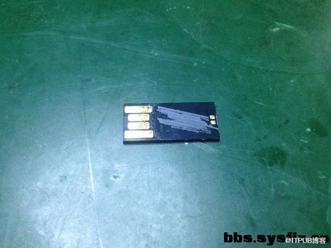 我们都知道一体封装U盘的外层是有一层漆涂料隔绝电路板的。因此,如果需要通过nand flash调试点将数据导出的话,需要打磨掉外层的隔绝漆,这是恢复一体盘的。下面是整个过程。