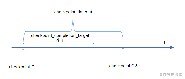 另外,与检查点相关的较为重要的参数有checkpoint_timeout和checkpoint_completion_target,这两个参数的作用如下图所示: