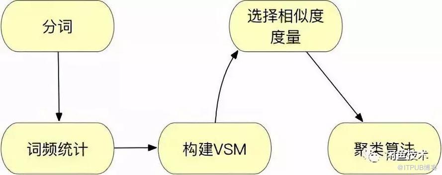 对于每一个小区都做这样一个操作,就会得到每个小区对应的前缀树,也称为小区树(使用前缀树实现),这个小区称为小区树的根。容易知道一个小区可能在多个小区树中。在这个过程中也能够识别一部分小区楼栋、子小区和父小区。 本质上讲,这一步是文本聚类的过程。如下图所示,文本聚类通常对文本分词,然后使用TF-IDF(Term Frequency-Inverse Document Frequency,词频-逆文本频率)统计出词频、设置词语权重,构建VSM(Vector Space Model,向量空间模型), 为每个文本构建等长向量,最后设置度量标准(欧氏距离、余弦相似度等),使用聚类算法对文本聚类。
