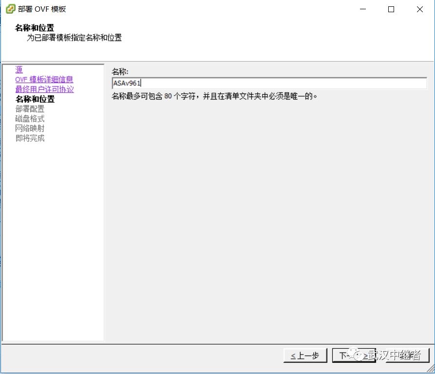在OVF模板部署向导中,为ASAv命名,并下一步: