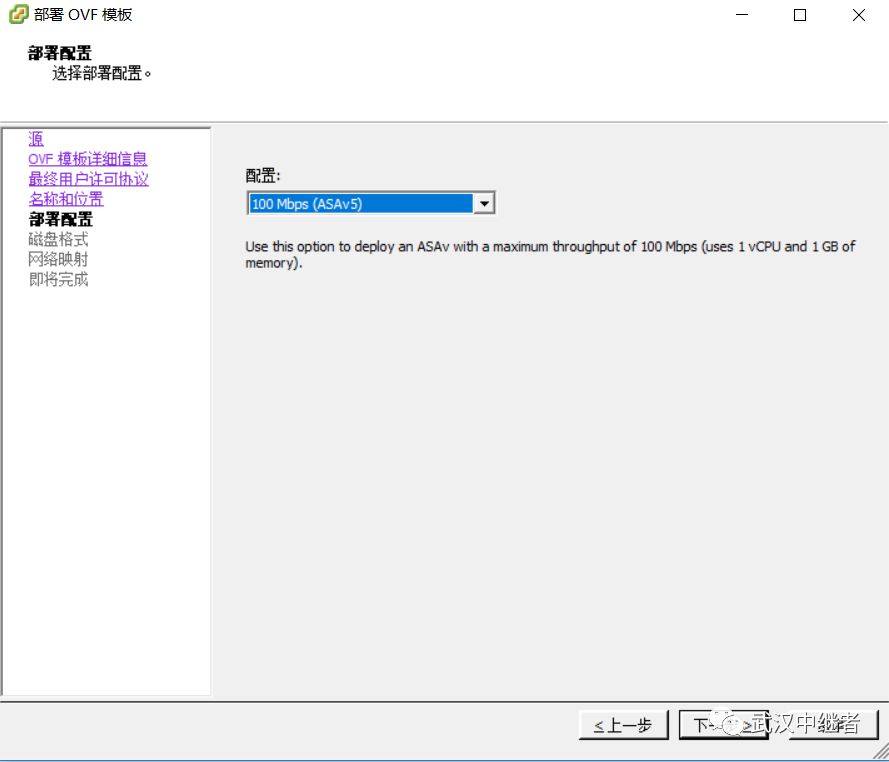 在OVF模板部署向导中,配置网络吞吐量,并下一步,该吞吐量受限于授权文件和ESXi主机的网卡实际能力: