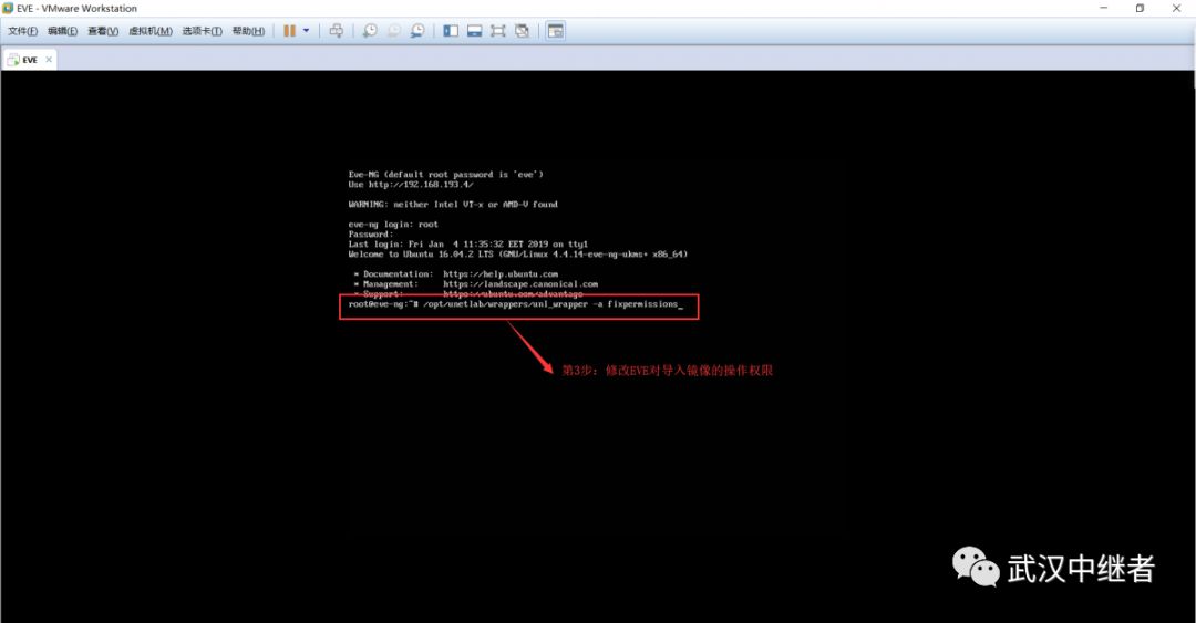 上传完毕后,在EVE的控制台配置界面,进行权限修改,命令如下:
