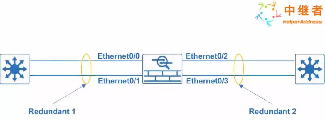 注:如下图所示,Ethernet 0/0 和Ethernet 0/1为逻辑Redundant 1的成员接口,Ethernet 0/2和Ethernet 0/3为Redundant 2的成员接口。