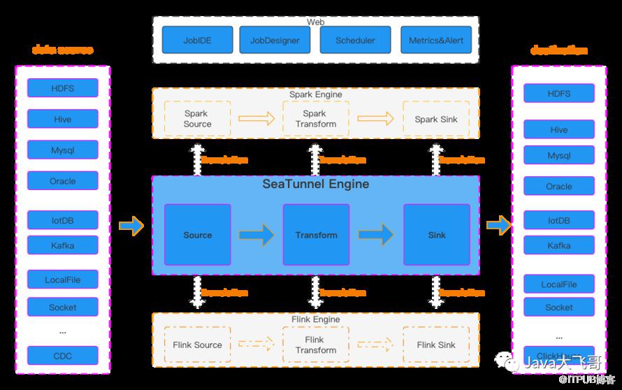 Apache SeaTunne默认使用的是自研的SeaTunne Zeta引擎,还支持Spark、Flink计算引擎