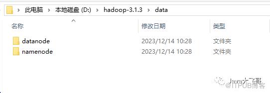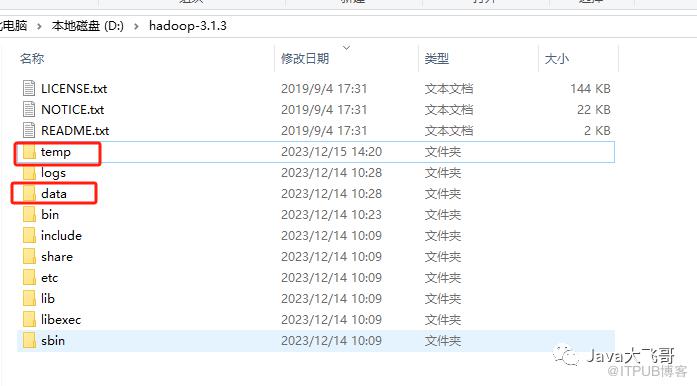 进入hadoop的安装目录D:\hadoop-3.1.3下新建data和temp文件夹
