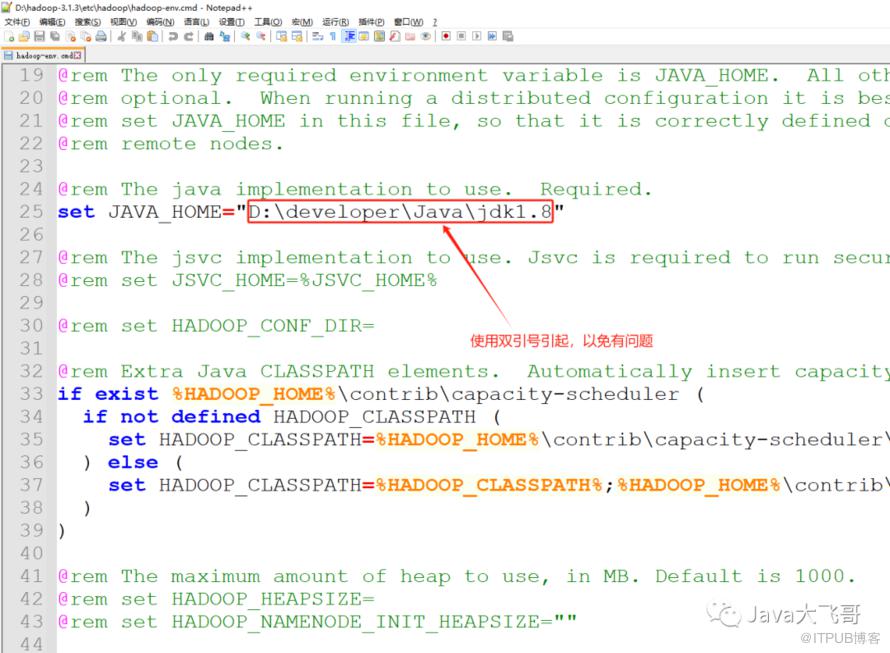 2.4.2.1 修改hadoop-env.cmd文件中的JAVA_HOME路径