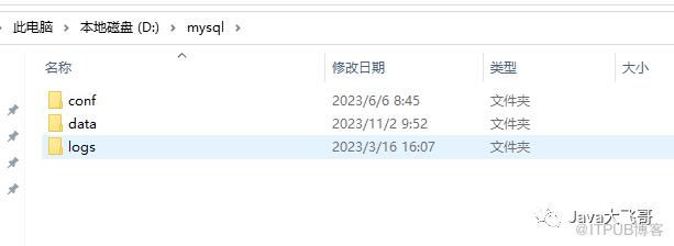 在D盘下的mysql目录下新建如下目录:
