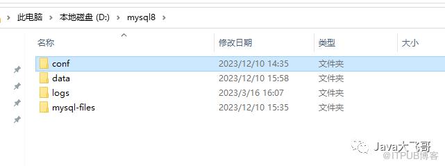 在D盘下的mysql8目录下新建如下目录: