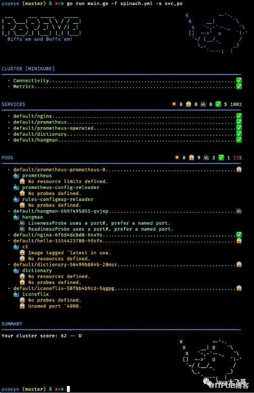 Popeye是一个实用程序,它扫描实时的Kubernetes集群,并报告部署资源和配置的潜在问题。它根据已部署的内容而不是磁盘上的内容对集群进行消毒。