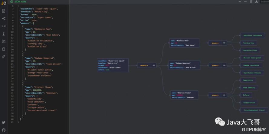 功能简单:支持放大/缩小、展开/收缩、搜索节点、导出图片等操作,部署安装也简单,可以将json数据可视化为一棵关系树,一眼看清楚json数据的关系奥秘。