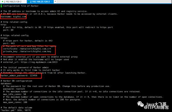 ## Configuration file of Harbor# hostname设置访问地址,可以使用ip、域名,不可以设置为127.0.0.1或localhost= 172.33.16.1 #需要根据实际情况手动修改# 访问协议,默认是http,也可以设置https,如果设置https,则nginx ssl需要设置on= http# mysql数据库root用户默认密码root123,实际使用时修改下= root123= 3customize_crt = onssl_cert = /data/cert/server.crtssl_cert_key = /data/cert/server.keysecretkey_path = /data= NA# 邮件设置,发送重置密码邮件时使用== smtp.mydomain.com= 25= sample_admin@mydomain.com= abc= admin= false# 启动Harbor后,管理员UI登录的密码,默认是Harbor12345= Harbor12345# 认证方式,这里支持多种认证方式,如LADP、本次存储、数据库认证。默认是db_auth,mysql数据库认证= db_auth# LDAP认证时配置项#ldap_url = ldaps://ldap.mydomain.com#ldap_searchdn = uid=searchuser,ou=people,dc=mydomain,dc=com#ldap_search_pwd = password#ldap_basedn = ou=people,dc=mydomain,dc=com#ldap_filter = (objectClass=person)#ldap_uid = uid#ldap_scope = 3#ldap_timeout = 5# 是否开启自注册self_registration = on# Token有效时间,默认30分钟= 30# 用户创建项目权限控制,默认是everyone(所有人),也可以设置为adminonly(只能管理员)= everyone= on